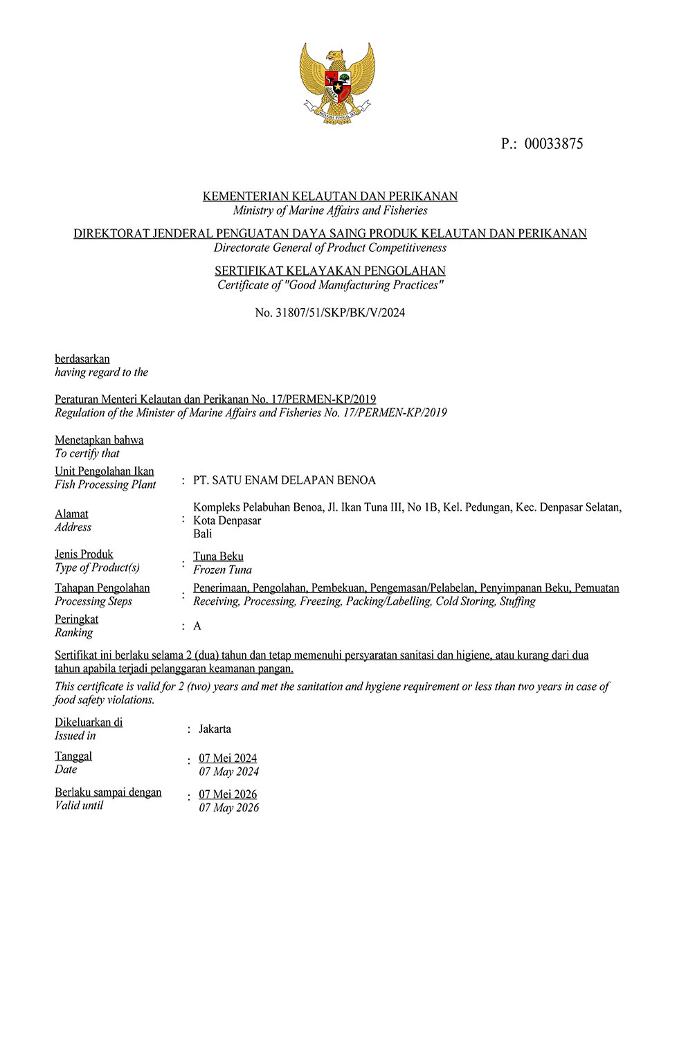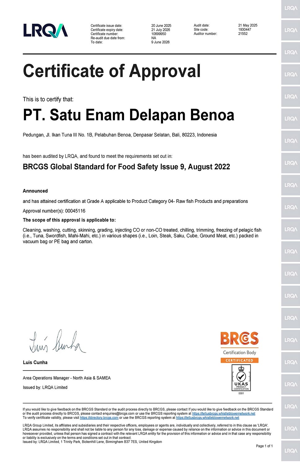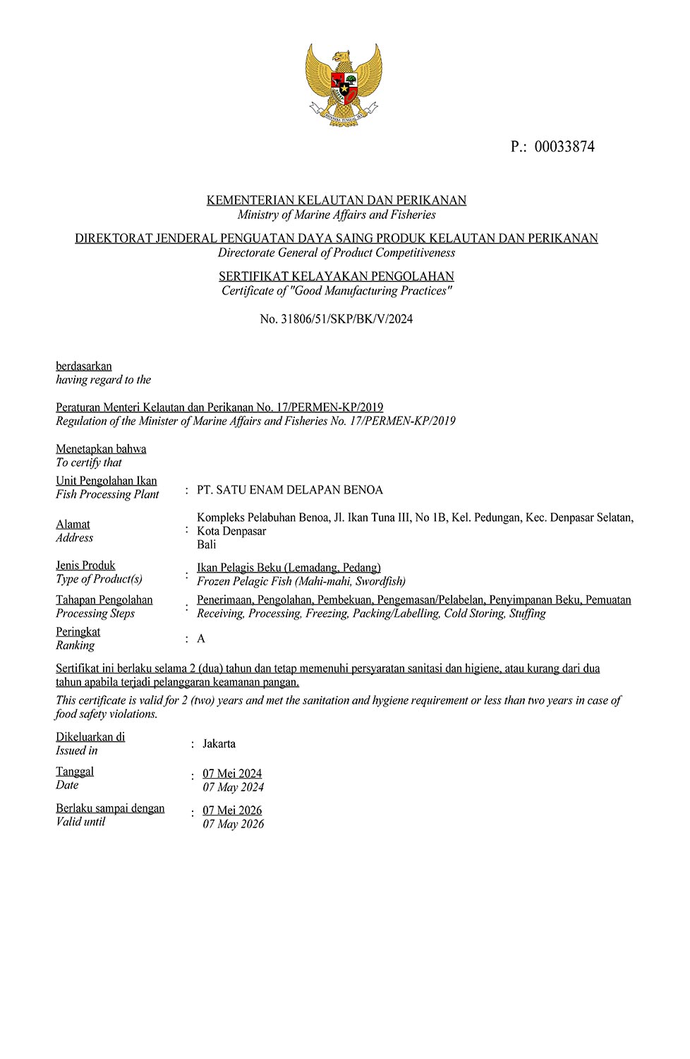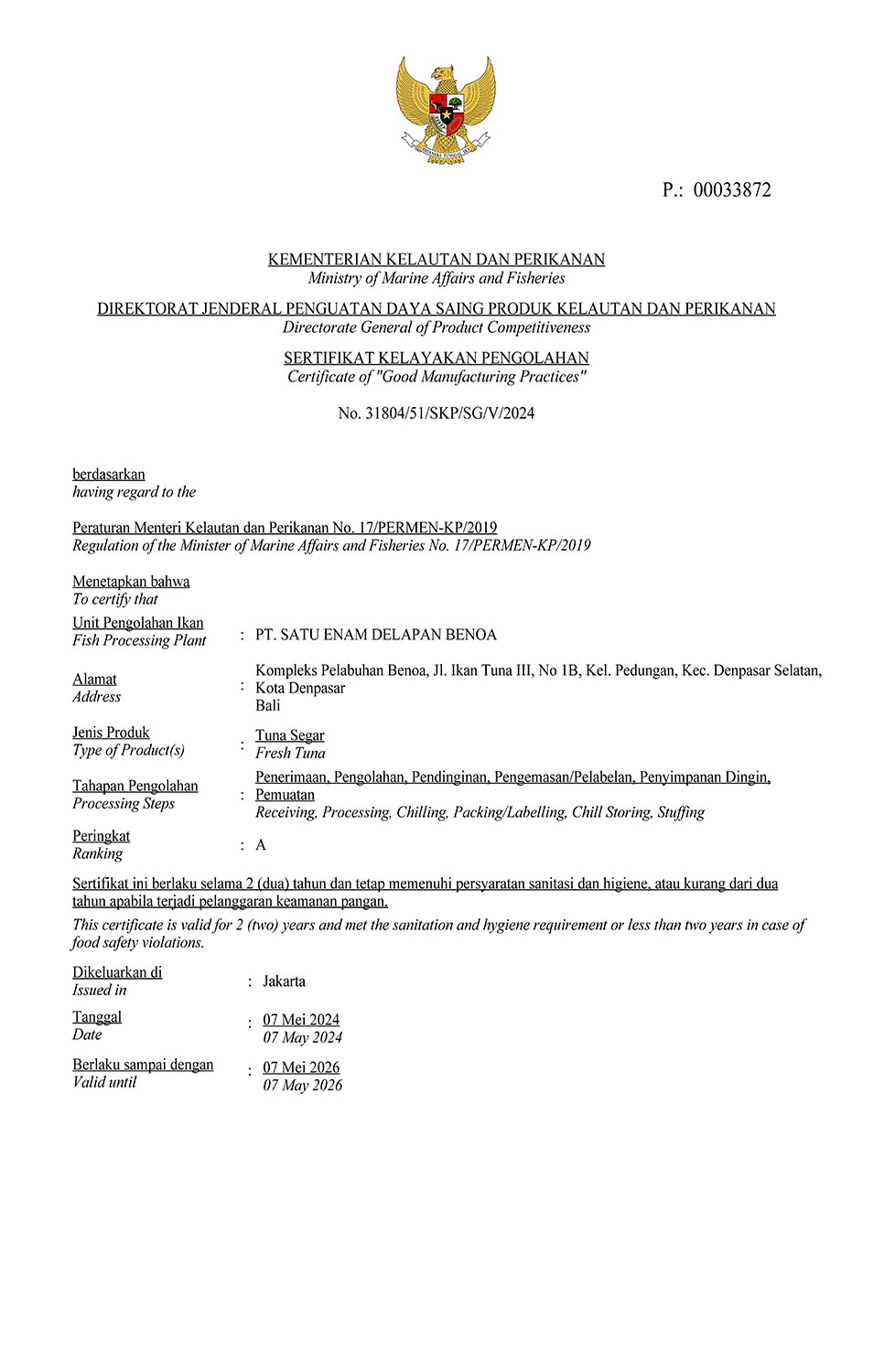 PT. Satu Enam Delapan Benoa is a leading exporter and processor of fresh and frozen seafood in Indonesia. Seafood has been our passion and way of life.